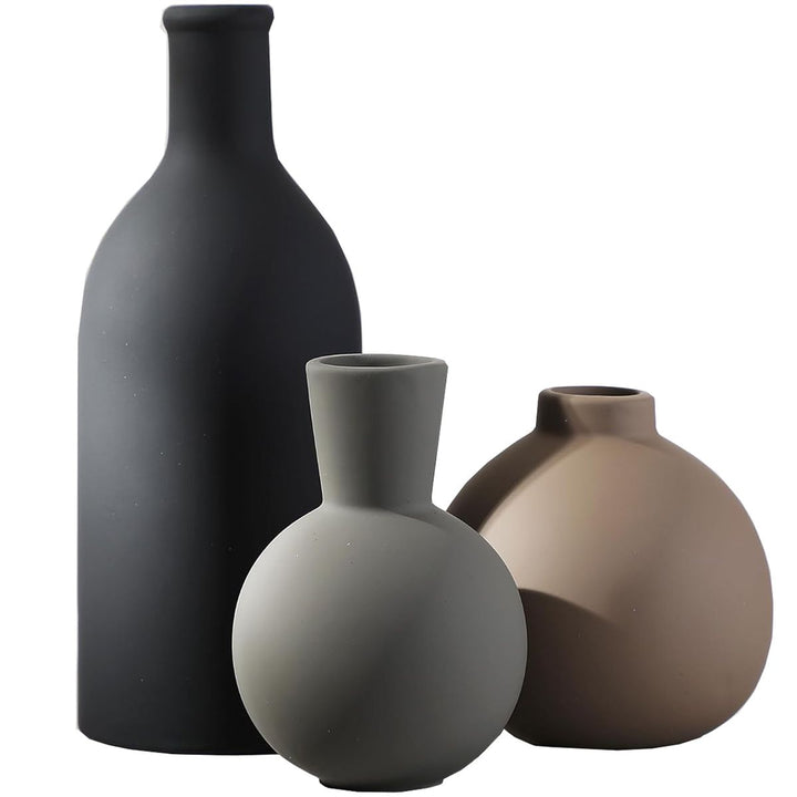 Cart In Mart 3-Piece Rustic Vase Set Decorative Ceramic Vases for Pampas Dried Flowers