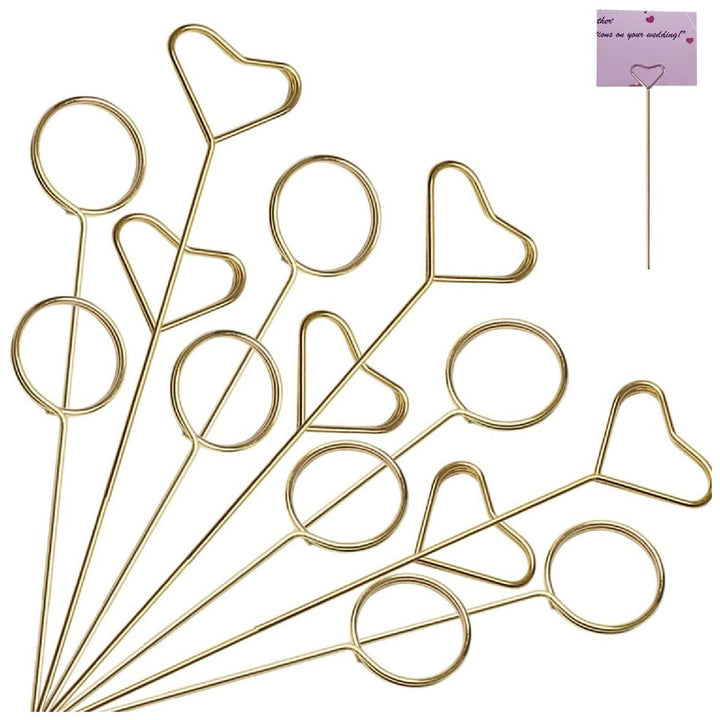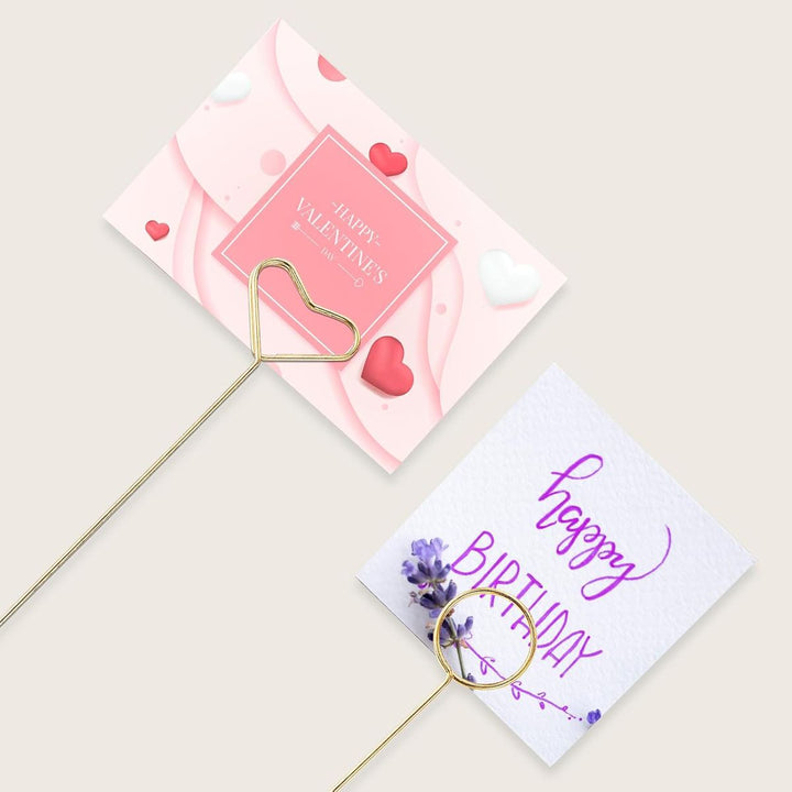 Designed for versatility and beauty, these metal card holder sticks are perfect for flower arrangements, gift baskets, table decorations, and event displays.