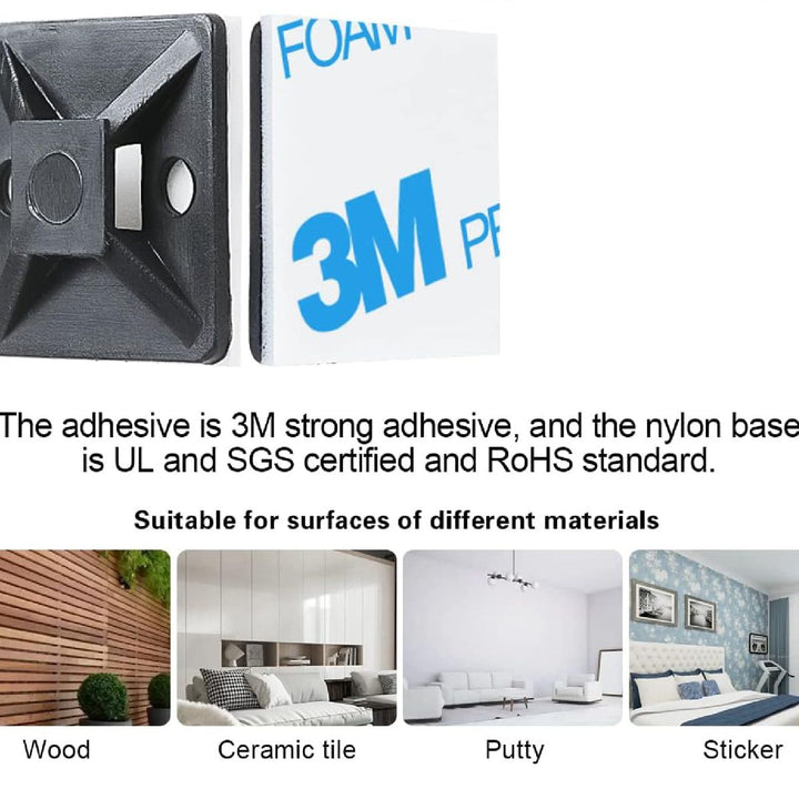 Made from premium 3M strong back-glue adhesive and industrial-grade PA66 nylon, these mounts provide extra grip and long-lasting hold. They're designed to withstand heat, moisture, and UV exposure, making them ideal for indoor and outdoor use.