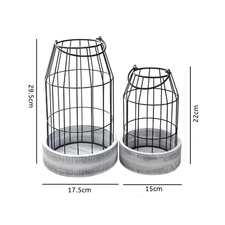 Cart In Mart 2 Piece Rustic Farmhouse Lantern Decor Stylish Decorative Set -Metal