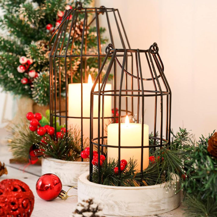 Get creative with how you decorate them! These lanterns look stunning with LED candles, fairy lights, faux greenery, flowers, or seasonal décor like pinecones or ornaments. (Note: Not suitable for real flame candles.)