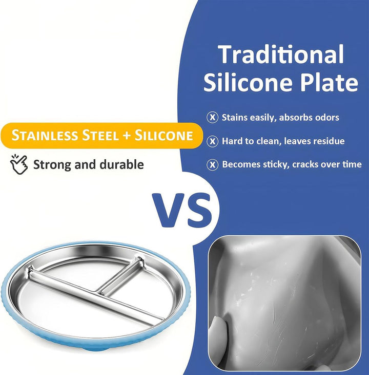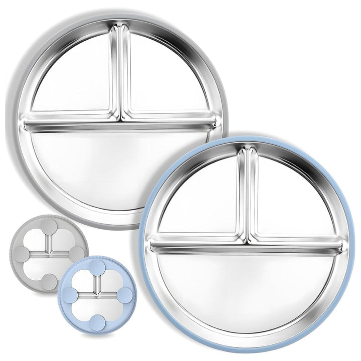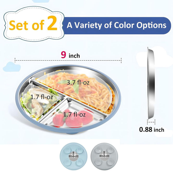 Cart In Mart 2Pack Stainless Steel Toddler Plates 23cm Divided Baby Plates Suction Base