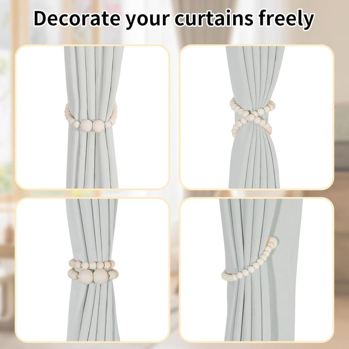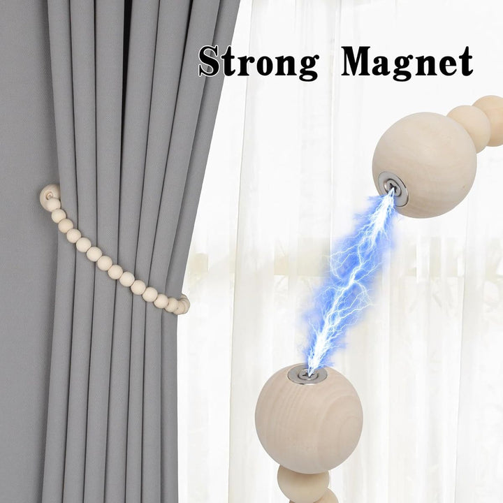 Cart In Mart 2Pack Wooden Bead Magnetic Curtain Tiebacks Curtain Holdbacks Strong Magnet