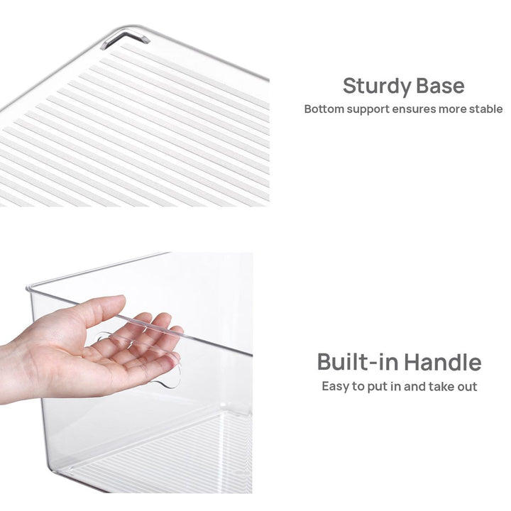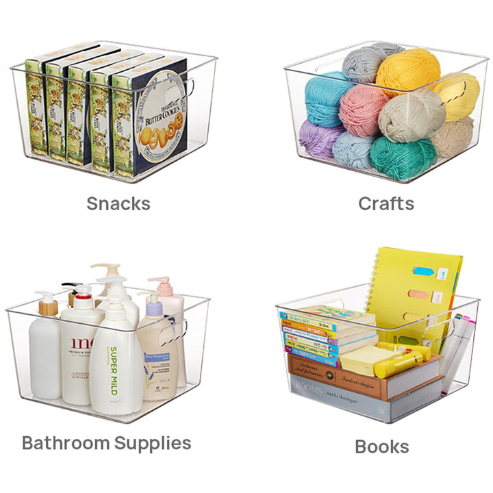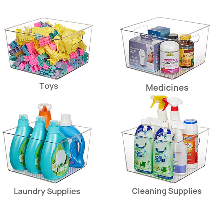 Made from premium BPA-free polyethylene material, these clear bins are strong, durable, and safe for storing food, cleaning products, toys, or toiletries. The transparent design lets you see what's inside at a glance, helping you find items quickly without pulling out the entire bin.