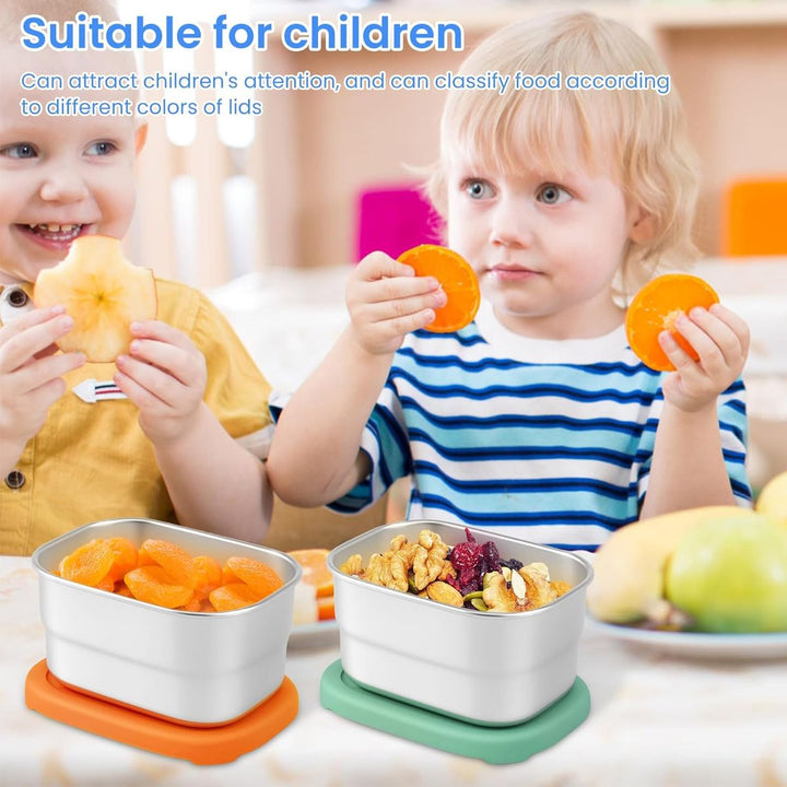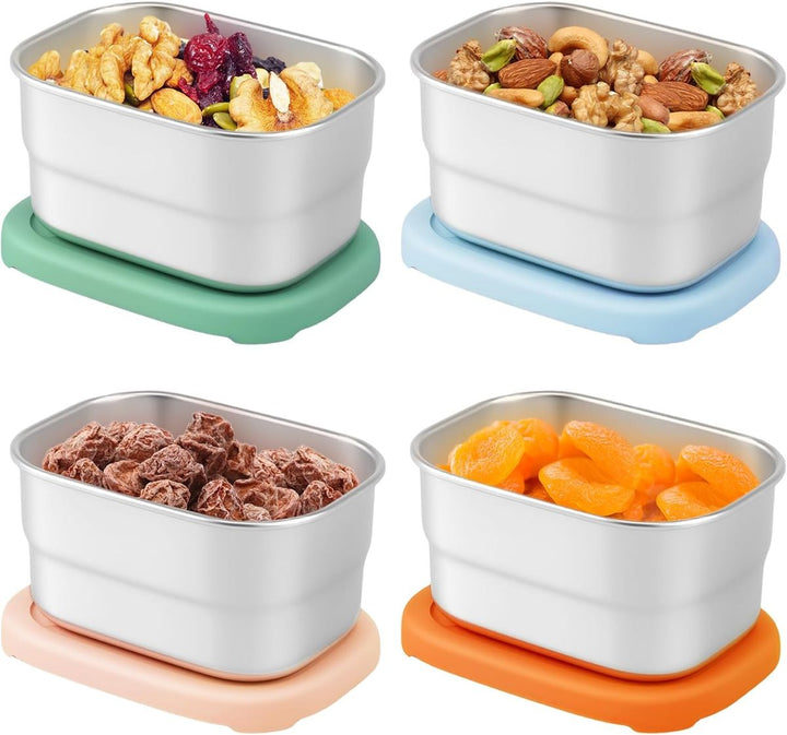 Keep your child's snacks fresh and organized with Cart in Mart 4-Pack Stainless Steel Snack Container Set, designed for daycare, school lunches, and on-the-go meals.