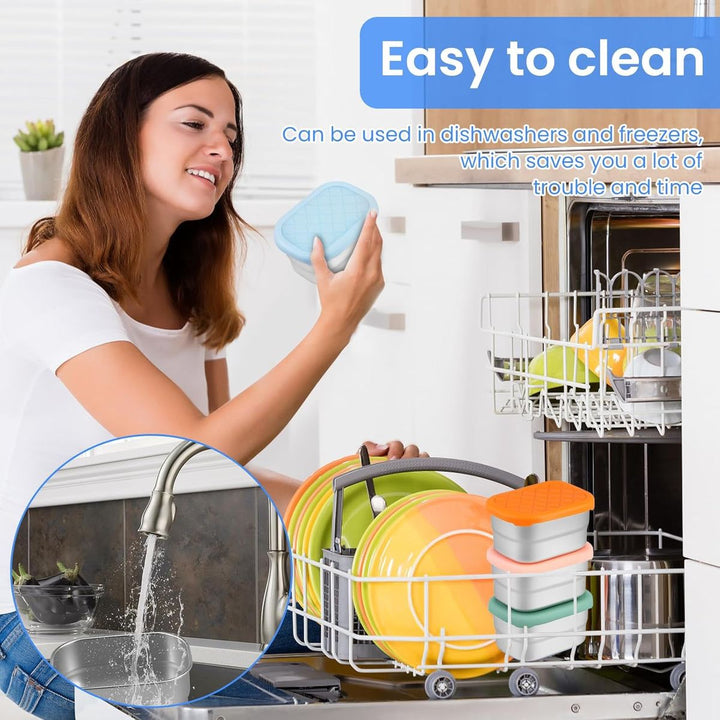 Crafted from high-quality stainless steel, these containers are built to last. The soft, leakproof silicone lids ensure freshness and prevent spills, offering an eco-friendly alternative to disposable plastic bags or boxes.