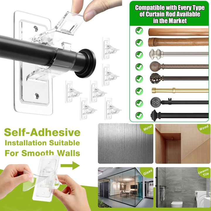 Cart In Mart 6Pack Adhesive Curtain Rod Holders No Drilling Nail-Free Adjustable Hooks
