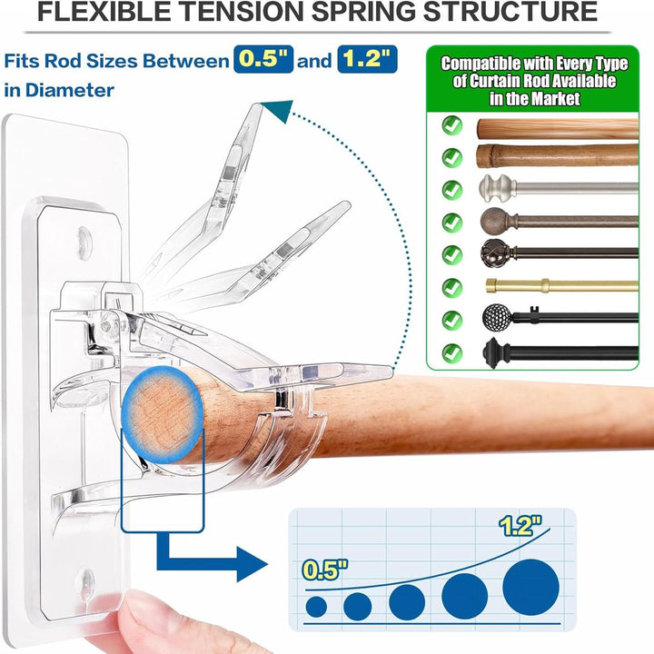 Durable & Adjustable - High-quality plastic material supports most curtain rods and ensures stability.