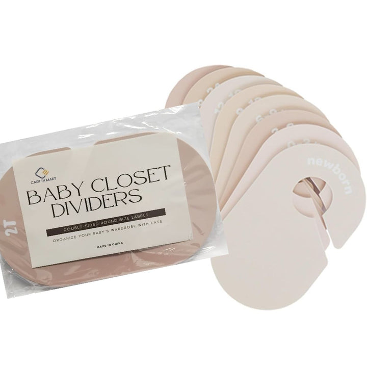Keep your baby's wardrobe beautifully organized with the Cart in Mart Baby Closet Dividers (Neutral). These practical and stylish baby clothes size organizers help you sort clothing by age or size, making dressing time simple and stress-free.