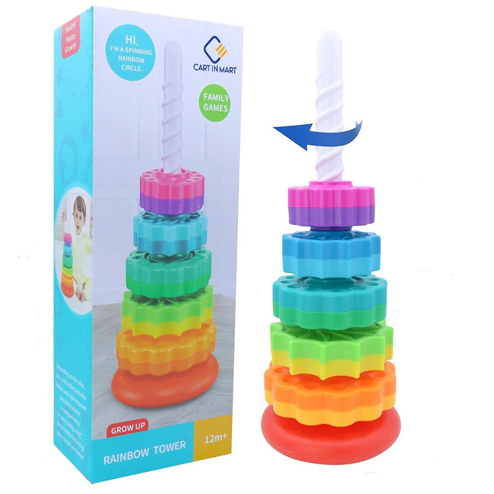 Make playtime both fun and educational with Cart in Mart Baby Spinning Stacking Toy a creative Montessori rainbow ring stacker designed for toddlers aged 1 to 3 years old.