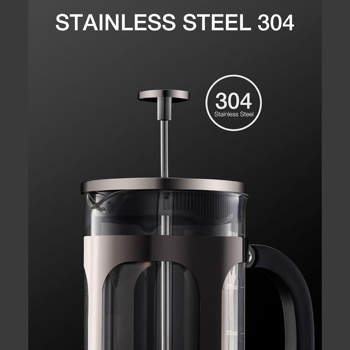 Built to last, the borosilicate glass construction resists thermal shock and high temperatures. This ensures your French press stays strong and reliable through countless mornings and coffee breaks. -