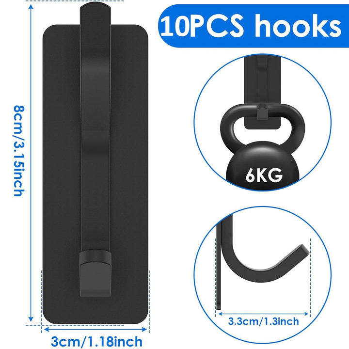 Cart In Mart Heavy Duty Metal Self-Adhesive Wall Hooks Stick On Door & Wall Hanger - Black - 10 Pack