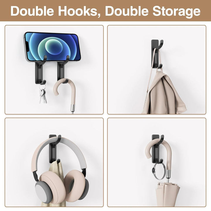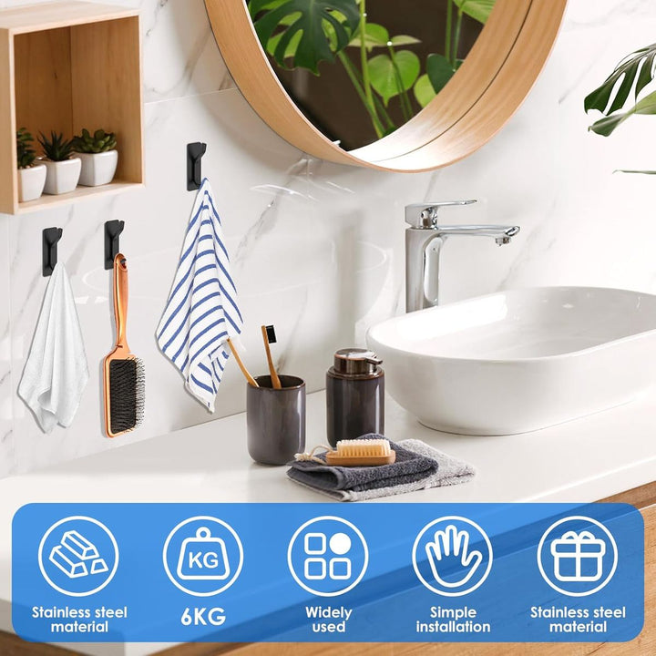 Durable & Rustproof - Made with premium black stainless steel, these adhesive wall hooks are resistant to rust and corrosion, ensuring long-lasting use even in humid areas like bathrooms or kitchens.
