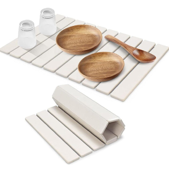 Perfect for drying dishes, utensils, glasses, vegetables, fruits, or even bathroom essentials like toothbrushes or soap dispensers. The sleek white finish blends beautifully with any modern home décor, while the durable stone material prevents mould, odour, and water stains.