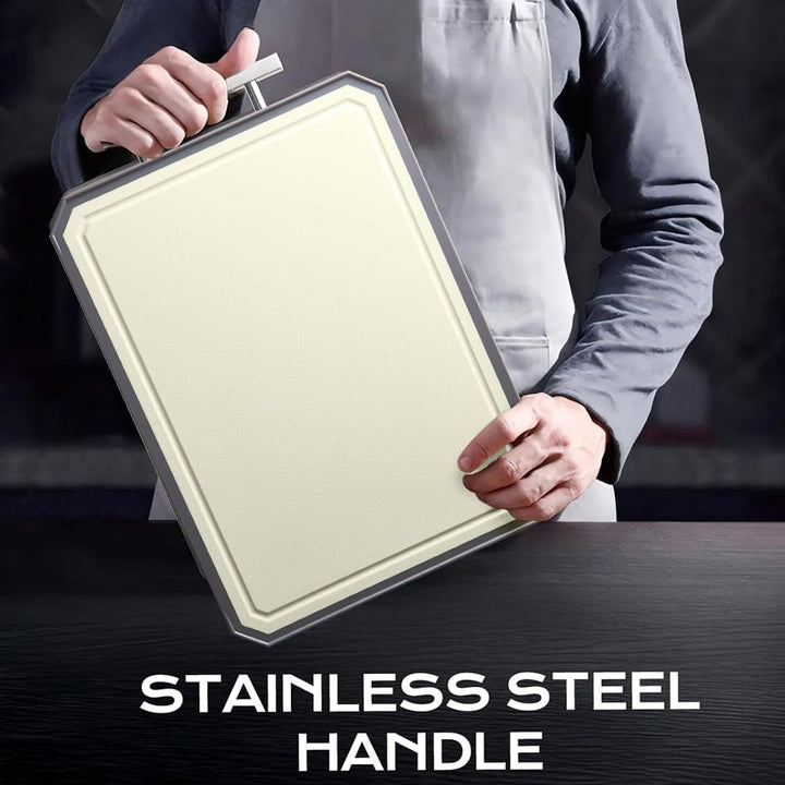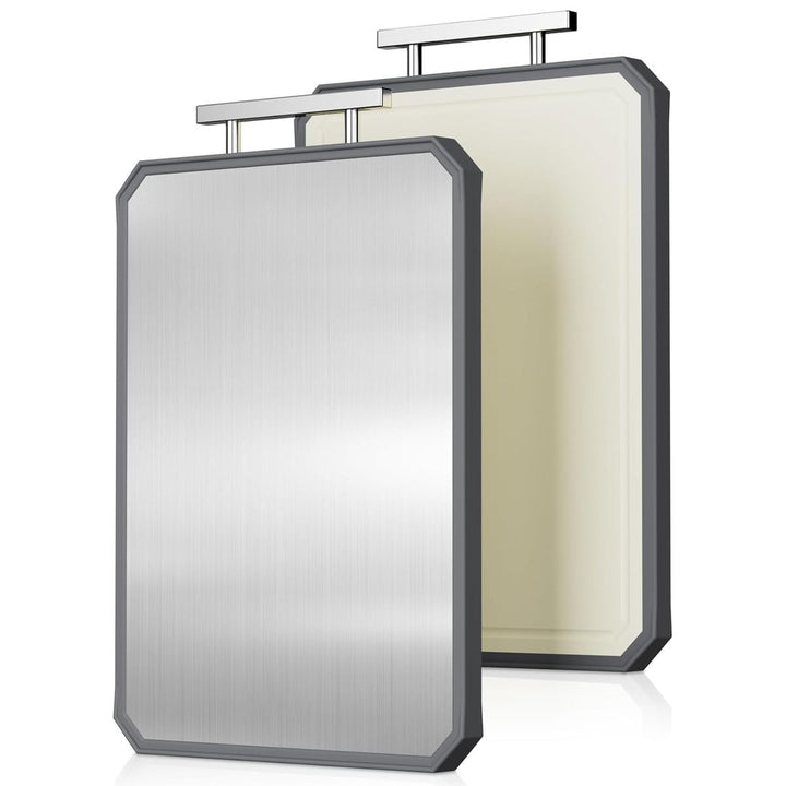 Upgrade your kitchen with Cart in Mart double-sided stainless steel cutting board, combining durability, hygiene, and modern design.