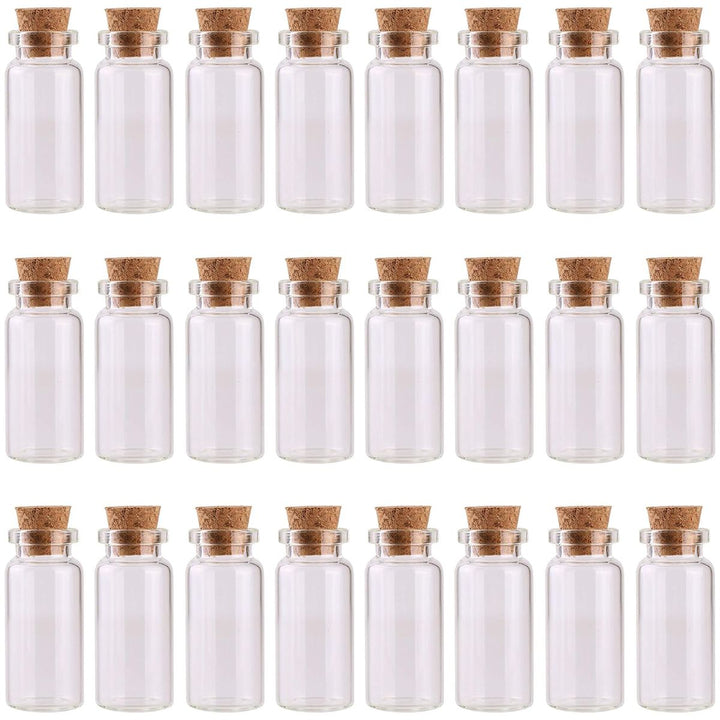 - Complete Set of 24: Includes 24 clear 10ml mini glass bottles with cork stoppers - perfect for multiple creative and storage uses.