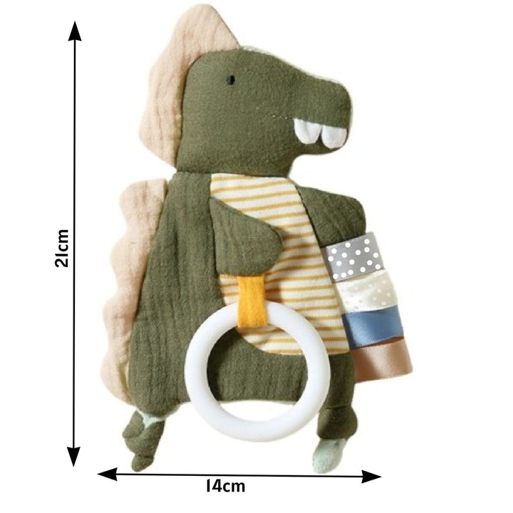 Cart In Mart Sensory Toy Dinosaur Teething Ring & Ribbons Soft Plush Baby Toy 0+ Months