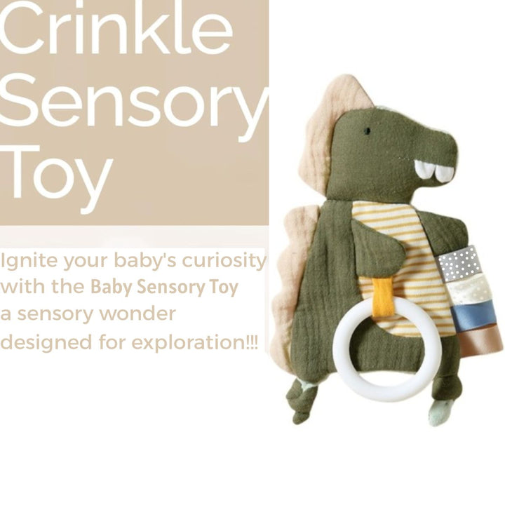 Make playtime both fun and developmental with the Cart in Mart Crinkle Sensory Toy Dinosaur, a soft and safe companion designed to engage your baby's senses from day one.