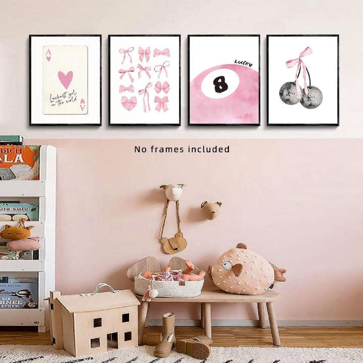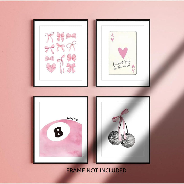 Transform your space with Cart in Mart set of 6 unframed 8x10 inch Coquette Aesthetic Posters, featuring soft pink tones, cute preppy designs, and trendy disco-inspired prints.
