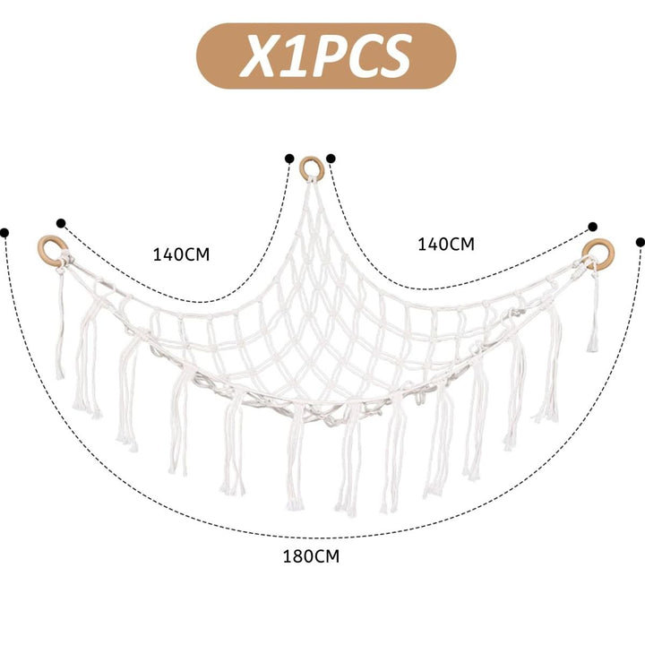 - Space-Saving Design (140 x 140 x 180cm): This large corner hammock maximizes room space by keeping toys off the floor and neatly displayed in a cozy wall corner. Ideal for bedrooms, nurseries, and playrooms.