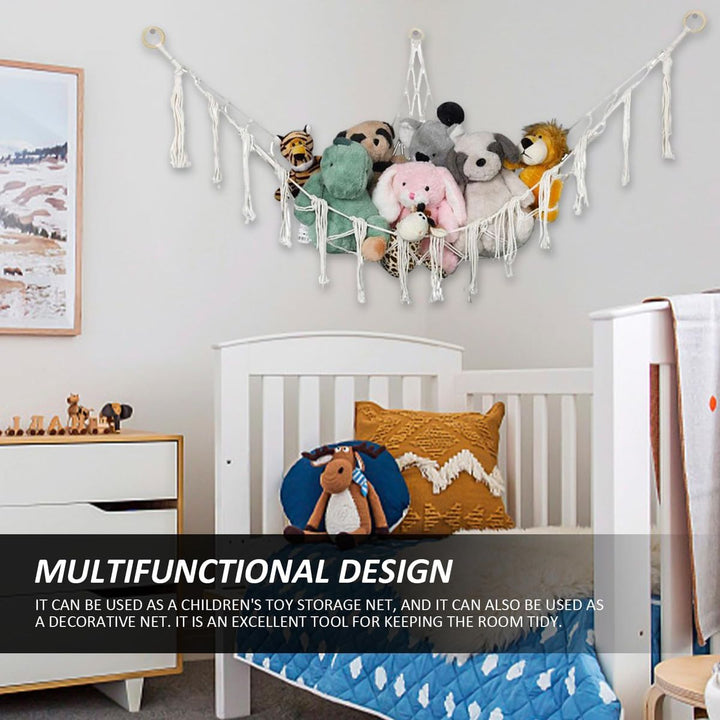 - Premium 100% Cotton Material: Crafted from soft, eco-friendly cotton, this macrame toy hammock is durable, sturdy, and long-lasting - perfect for holding multiple stuffed toys without tearing or sagging.