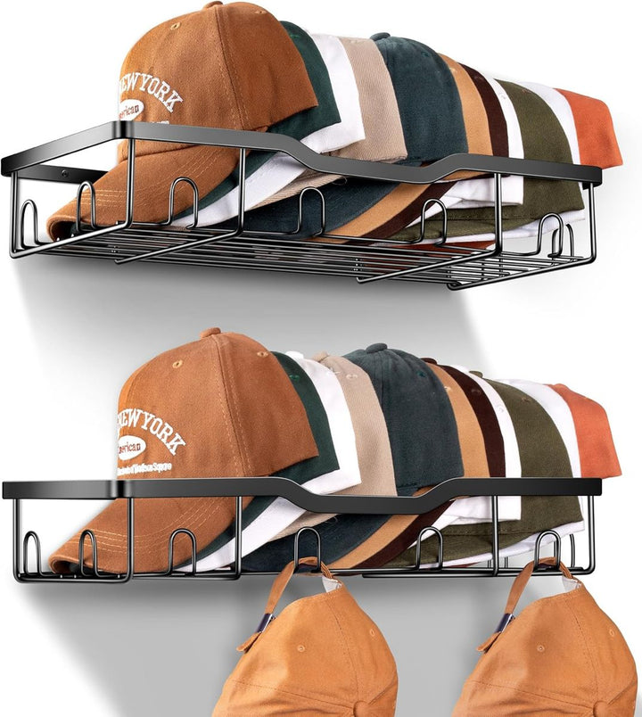 Keep your baseball caps neatly organised and easily accessible with the Cart in Mart 2 Pack Metal Hat Organiser for Wall.