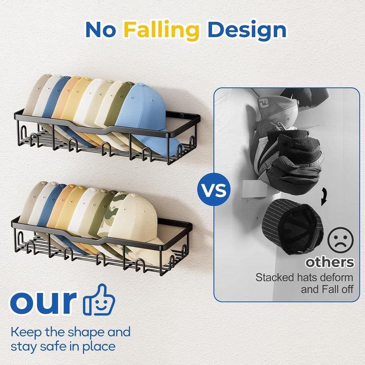 Ideal for baseball caps, snapbacks, visors, and sports hats, this sturdy wall-mounted design fits seamlessly into bedrooms, closets, entryways, or retail displays.